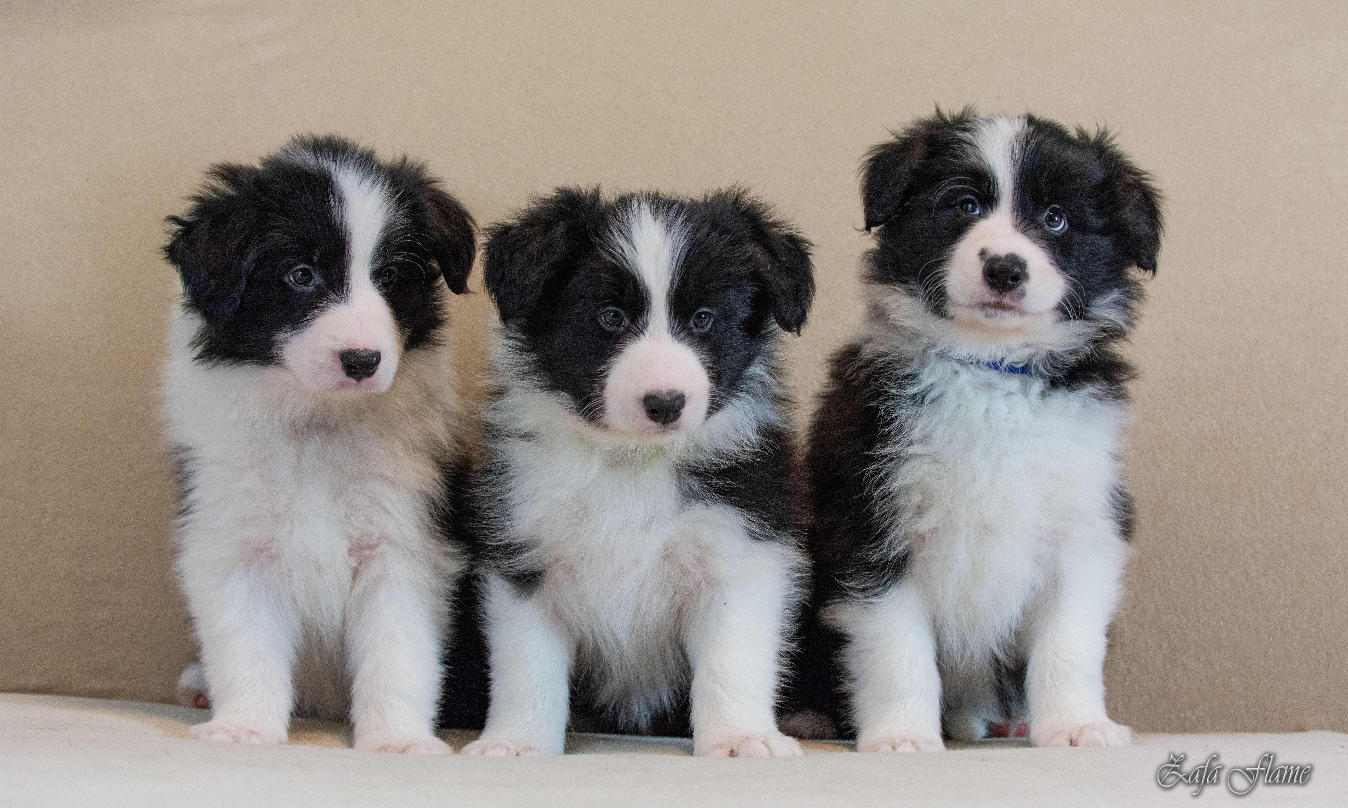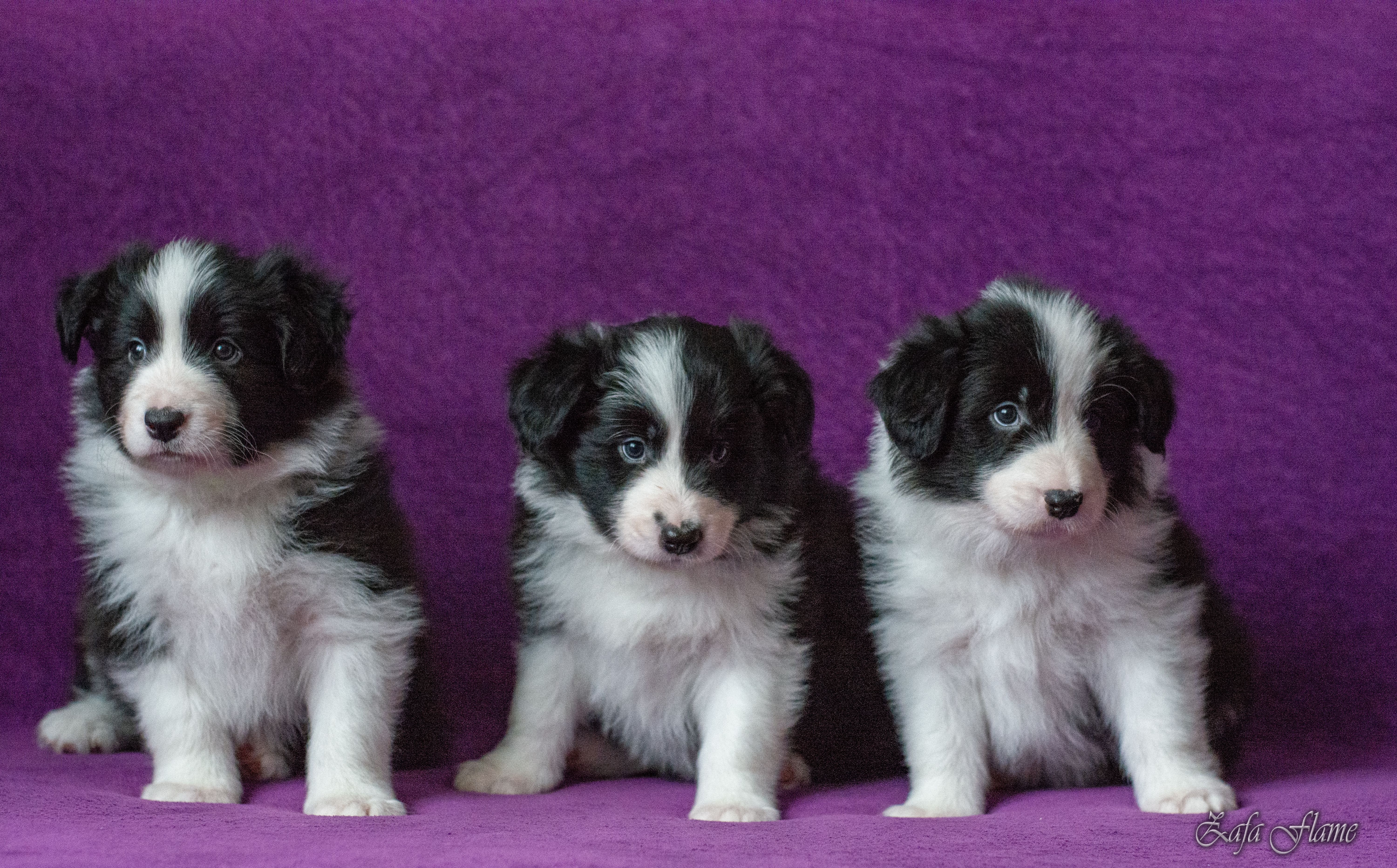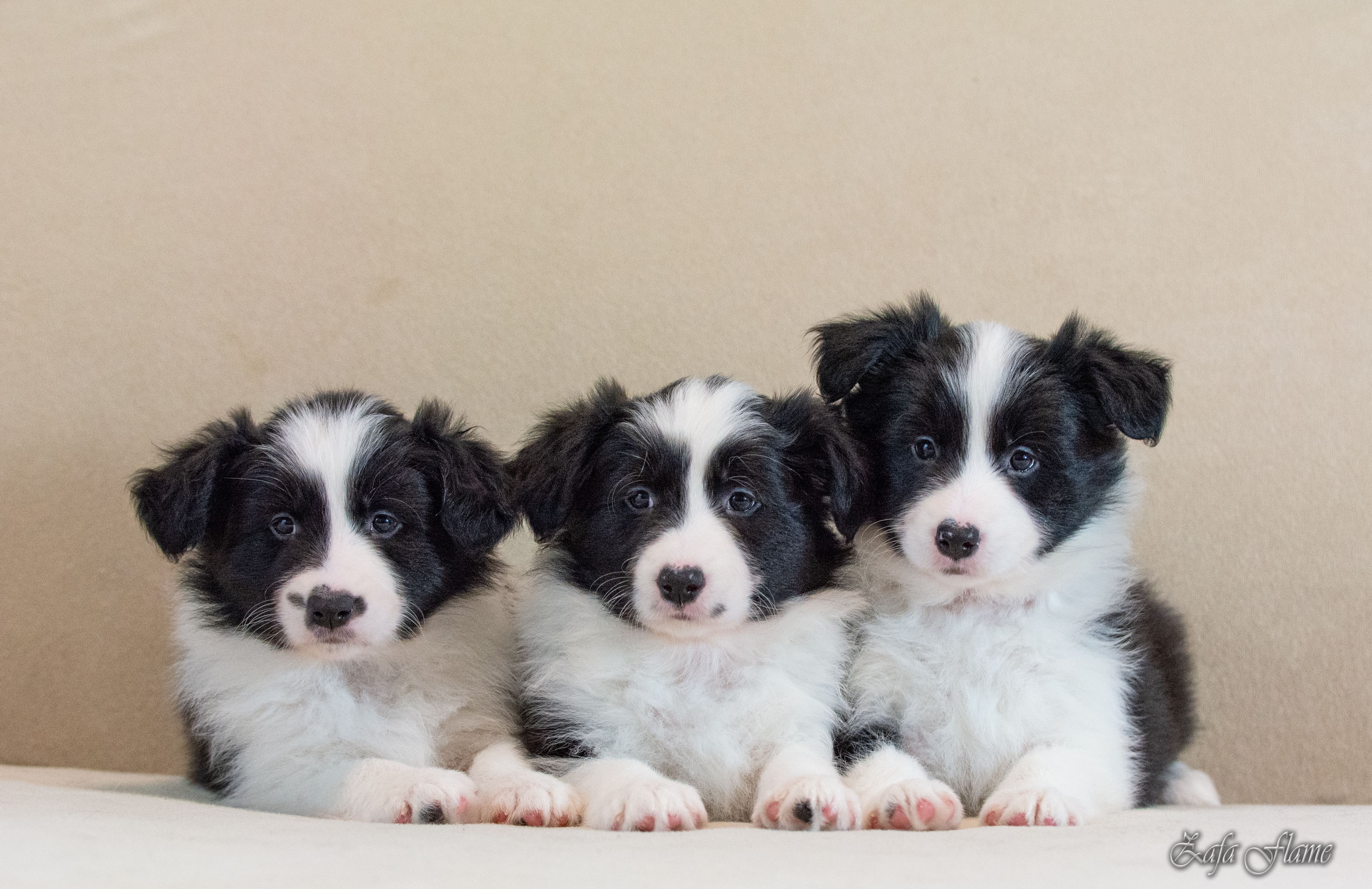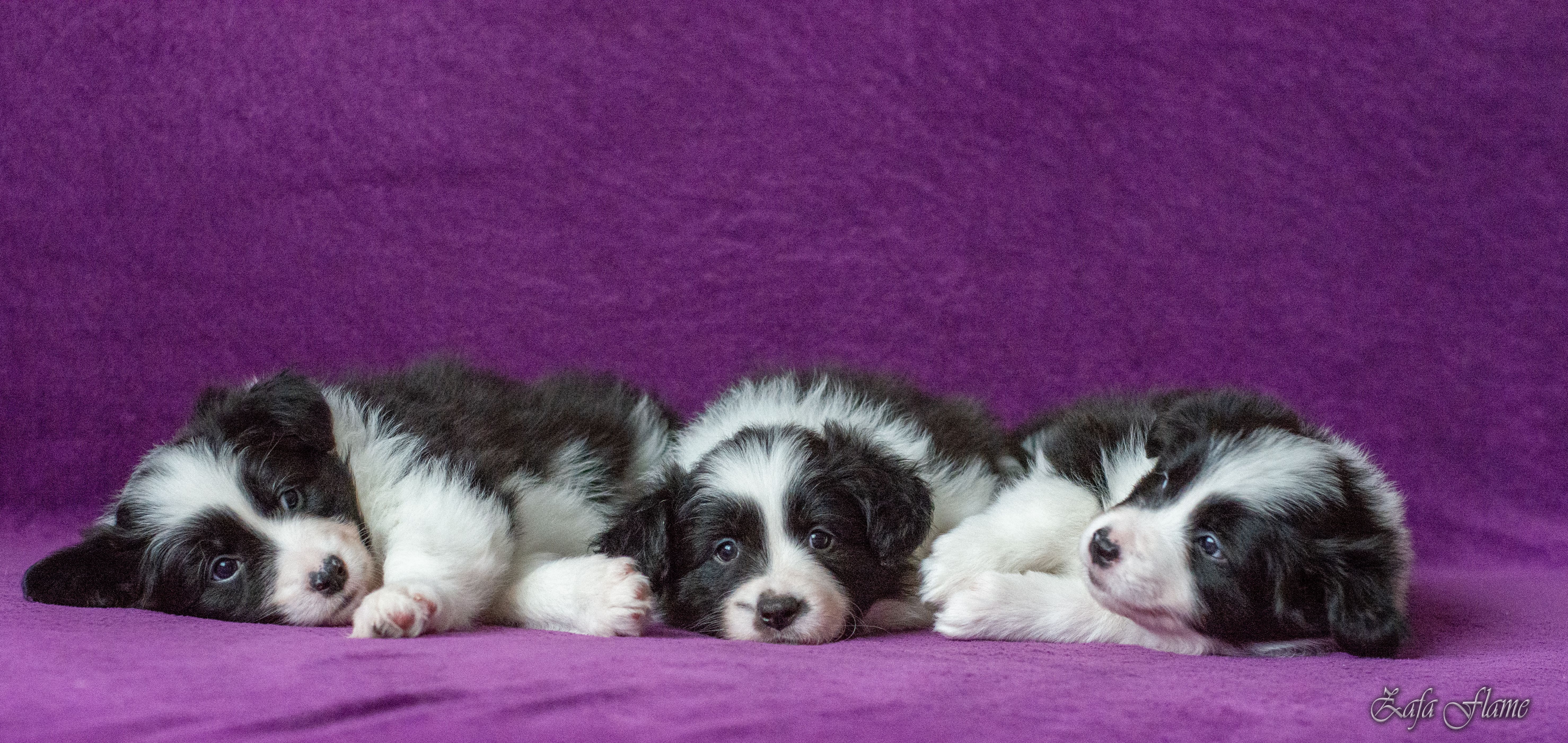 Štěňátka jsou naočkovaná, čipovaná, odčervená. Všichni jsou v pořádku a mají sbalené batůžky do nových domovů. Jen jeden pejsek Famous Fire (modrý) čeká na své nejlepší páníčky.